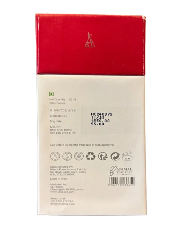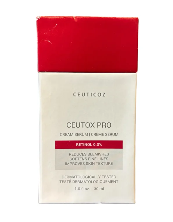 Ceuticoz Ceutox Pro Serum 0.3% Retinol is a powerful anti-aging solution designed to combat wrinkles, fine lines, and hyperpigmentation. Formulated with a blend of retinol, hyaluronic acid, and antioxidants, it stimulates collagen production and accelerates cell turnover. This serum rejuvenates and revitalizes the skin, promoting an even skin tone and improving overall texture for a youthful and radiant appearance.
